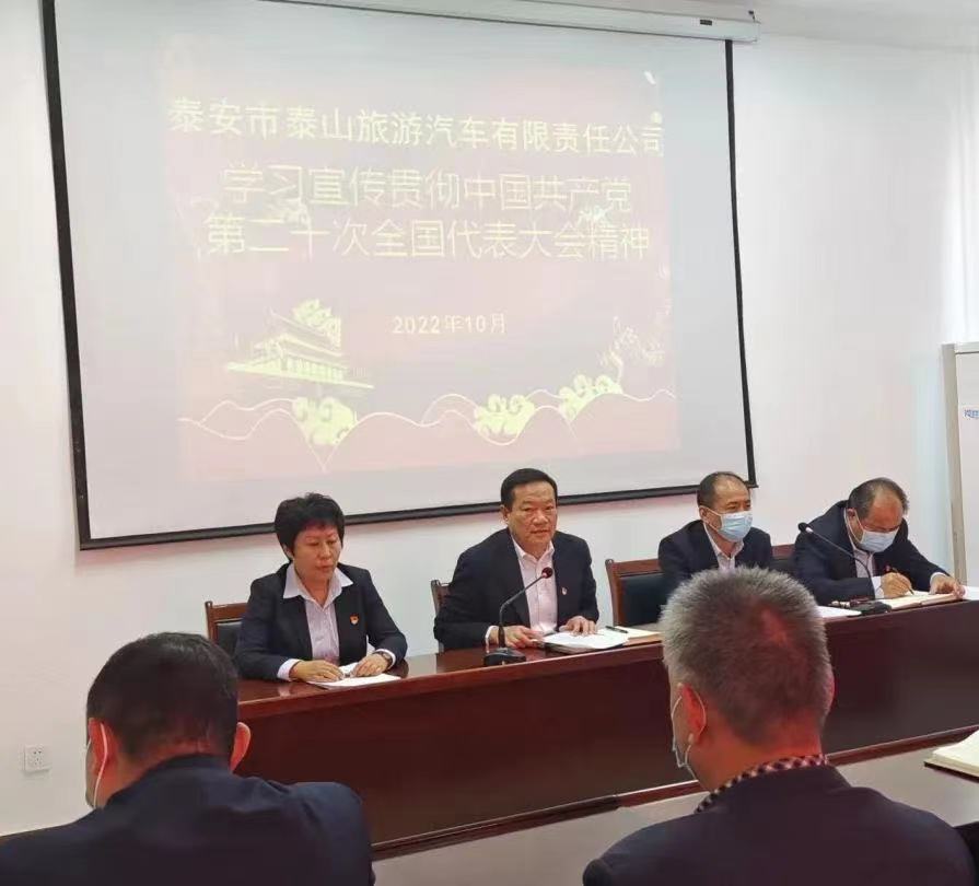 為認(rèn)真落實(shí)10月24日市委常委擴(kuò)大會(huì)議精神、10月26日泰山文旅集團(tuán)宣貫會(huì)議精神,組織安排公司黨的二十大精神學(xué)習(xí)宣傳貫徹工作,泰安旅汽結(jié)合公司實(shí)際,于10月27日上午在四樓會(huì)議室召開“泰安旅汽學(xué)習(xí)宣傳貫徹《中國共產(chǎn)黨第二十次全國代表大會(huì)》精神”會(huì)議。