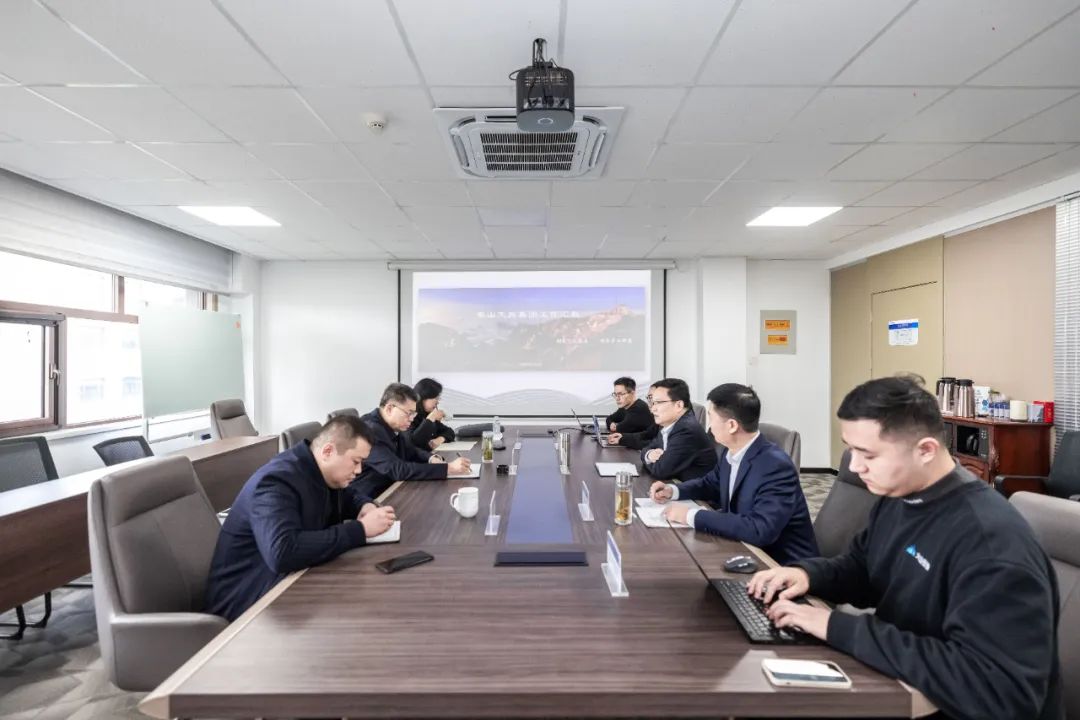 郭德文一行對智慧文旅基地、電商直播間、文創(chuàng)研發(fā)中心等區(qū)域進(jìn)行了實(shí)地參觀。并現(xiàn)場聽取工作人員對以泰山IP為核心的“泰山出品文創(chuàng)系列”、“元泰山數(shù)字科技”、“朝山歸文旅品牌”以及“泰山產(chǎn)品供應(yīng)鏈”等業(yè)務(wù)的詳細(xì)介紹。