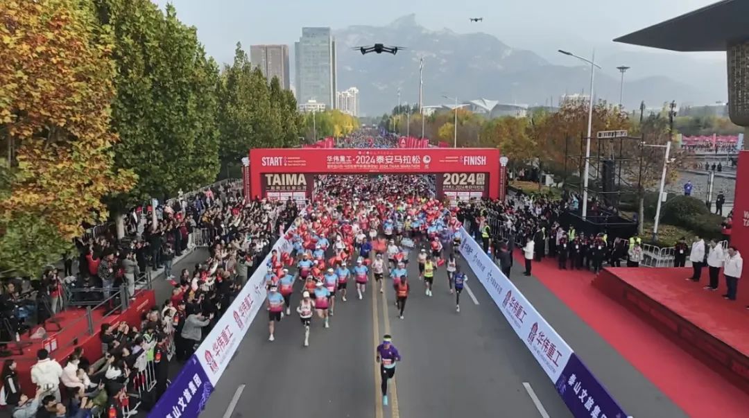 11月3日上午,2024泰安馬拉松暨好運(yùn)山東·馬拉松城市聯(lián)賽(泰安站)在泰山國(guó)際會(huì)展中心鳴槍起跑,22000余名跑者相約泰安,一起跑過(guò)壯麗山河。泰山文旅集團(tuán)作為唯一頂級(jí)贊助商,集團(tuán)機(jī)關(guān)與各子公司組成100人的文旅方陣,助力賽事成功舉辦。隨著發(fā)令聲響起,整個(gè)城市仿佛被瞬間點(diǎn)燃。選手們蓄勢(shì)出發(fā),精神抖擻,斗志昂揚(yáng)。賽道兩旁,觀眾揮舞著彩旗,為跑者們加油助威。