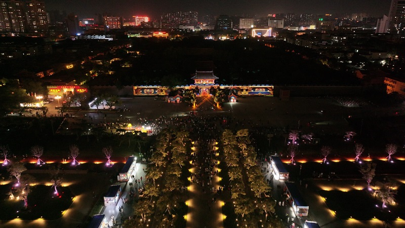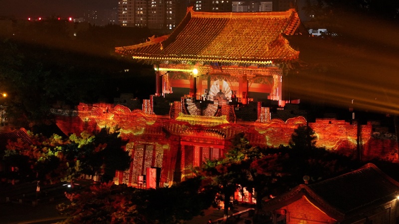 每日14時(shí)30分,活動特邀來自肥城夢幻桃花源的專業(yè)演職團(tuán)隊(duì)帶來專場文藝演出。當(dāng)夜幕降臨,18時(shí)30至21時(shí)(每半小時(shí)一場),岱廟北城墻將變身“巨型光影幕布”,上演燈光秀表演。光影流轉(zhuǎn)間,千年歷史與現(xiàn)代科技碰撞融合,讓游客在光影變幻中直觀感受泰山文化的厚重底蘊(yùn)與魅力。